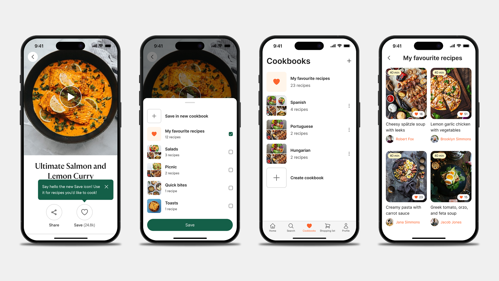 Users could then select between saving in a default collection - My Favourite Recipes - or in a new one.